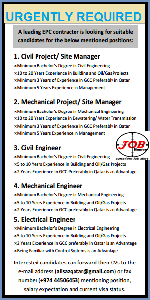 Search Tags:Electrical Engineer Job Vacancies,Mechanical Engineer Job Vacancies,Civil Engineer Engineer Job Vacancies,site manager Engineer Job Vacancies,civil project job vacancies ,Electrical Engineer Job Vacancies in Qatar,Mechanical Engineer Job Vacancies in Qatar,Civil Engineer Engineer Job Vacancies in Qatar,site manager Engineer Job Vacancies in Qatar,civil project job vacancies in Qatar,engineer recruitment in qatar,salary in qatar for engineer,engineer qatar salary in qatar for engineer